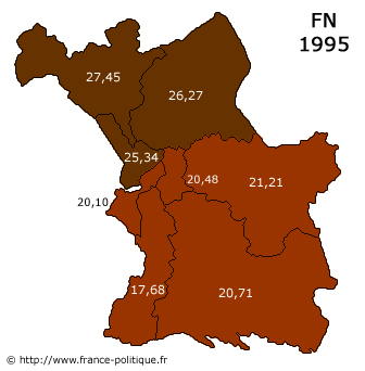 Aux élections municipales de 1995, le FN progresse conformément à la tendance nationale et obtient 21,99% sur l'ensemble de la cité, avec 9 conseillers municipaux: Jackie Blanc (Ier secteur), Jean Roussel (IIe), Marie-Odile Rayé (IIIe), Hubert Savon (IVe), Ronald Perdomo (Ve), Gilbert Victor (VIe), Maurice Gros (VIIe), Jean-Pierre Baumann et Bernard Marandat (VIIIe).