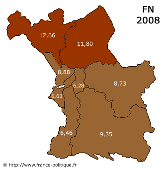 Aux municipales de 2008, le FN (8,76% sur l'ensemble de Marseille) opère son retour au conseil municipal de Marseille avec l'élection au premier tour de Bernard Marandat (VIIIe secteur). Dans le VIIe secteur, où un second tour est organisé, Stéphane Ravier n'est en revanche élu qu'au conseil de secteur (11,80% au premier tour puis 8,03% au second). Quant au MNR (allié dans le VIe secteur avec le MPF Francis Belotti), il est laminé dans le IIIe secteur, où la liste conduite par Hubert Savon ne récolte que 0,98% des suffrages exprimés.